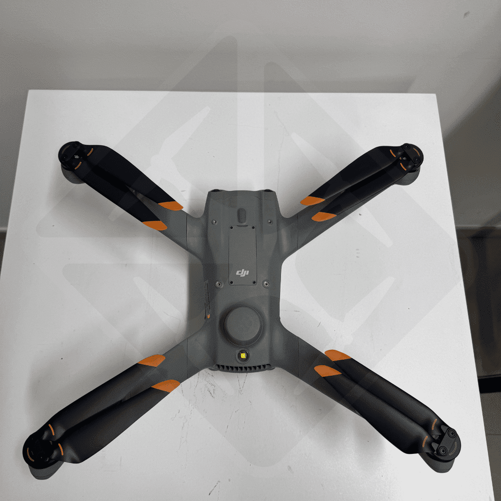 Le drone est en très bon état général. Quelques griffes superficielles sont visibles sur le caoutchouc des patins d’atterrissage, ainsi qu’une légère marque de frottement sur le dessous des bras. Ces traces mineures proviennent d’un usage normal lors des atterrissages dans le dock 2. Aucun impact sur les performances.